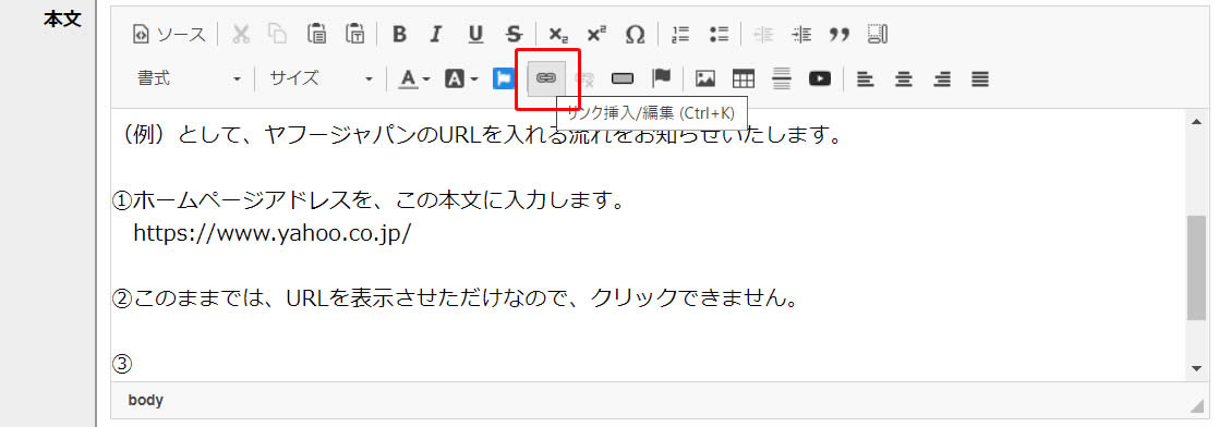 (例)として、ヤフージャパンのURLを入れる流れをお知らせいたします。