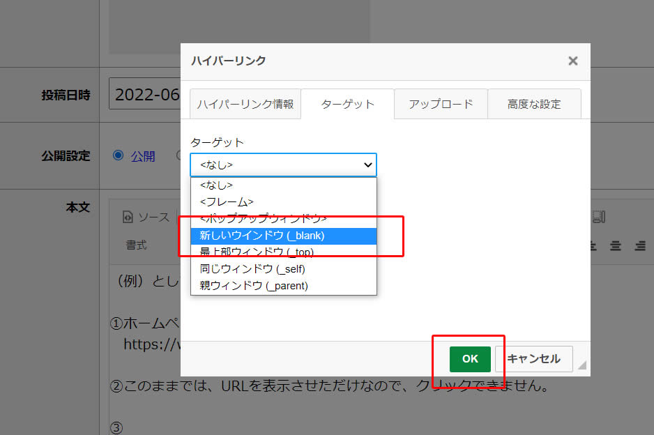 ⑥その後、下記の赤枠を選択して、OKボタンをクリックしてください。