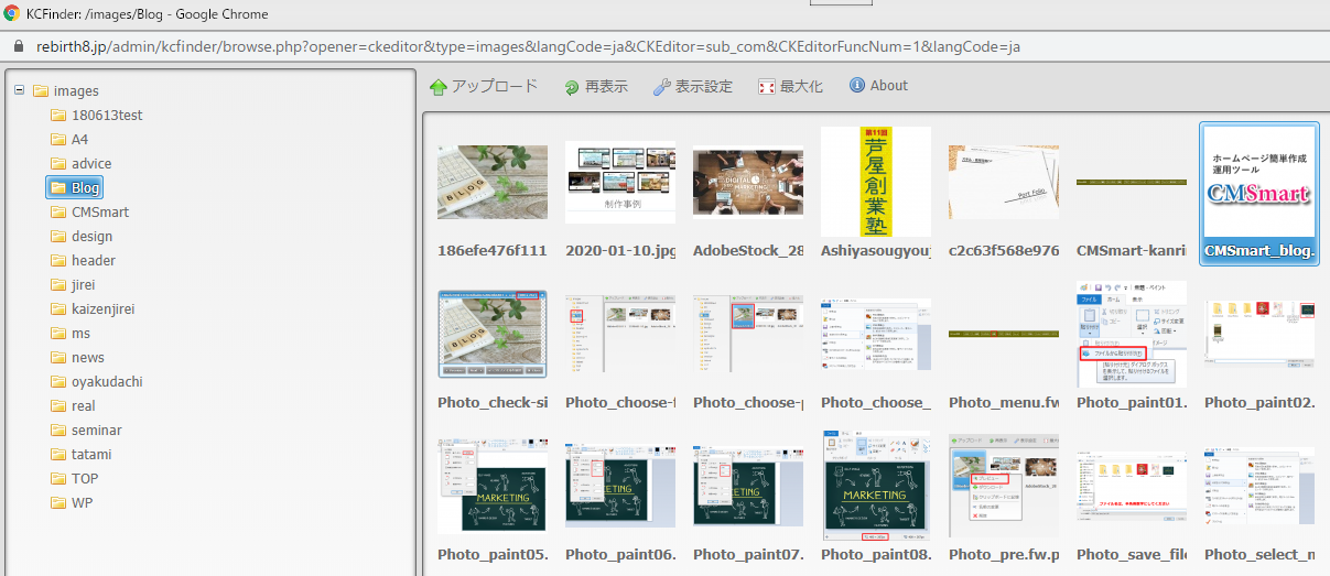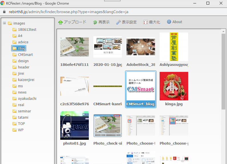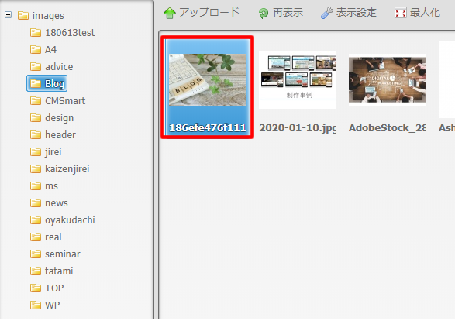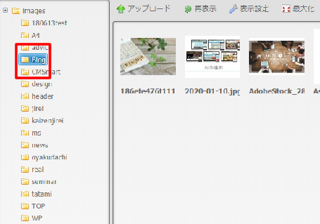 フォルダ名は、赤枠内を示しています - 管理画面メニューにある「画像」をクリックして、先ほど確認したフォルダをクリックする