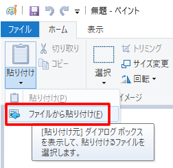 - ファイルの下にある貼り付けの▼をクリックして、「ファイルから貼り付け」をクリックする
