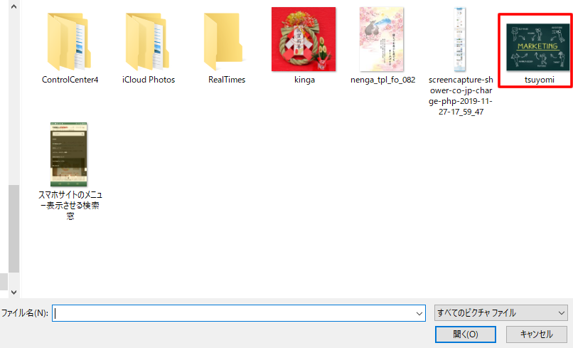 - 加工したい画像ファイルを選択して、「開く」をクリックする