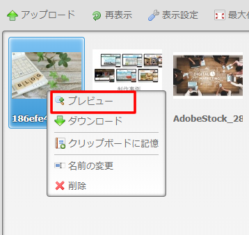 - 右クリックして表示されるメニューから、プレビューをクリックする
