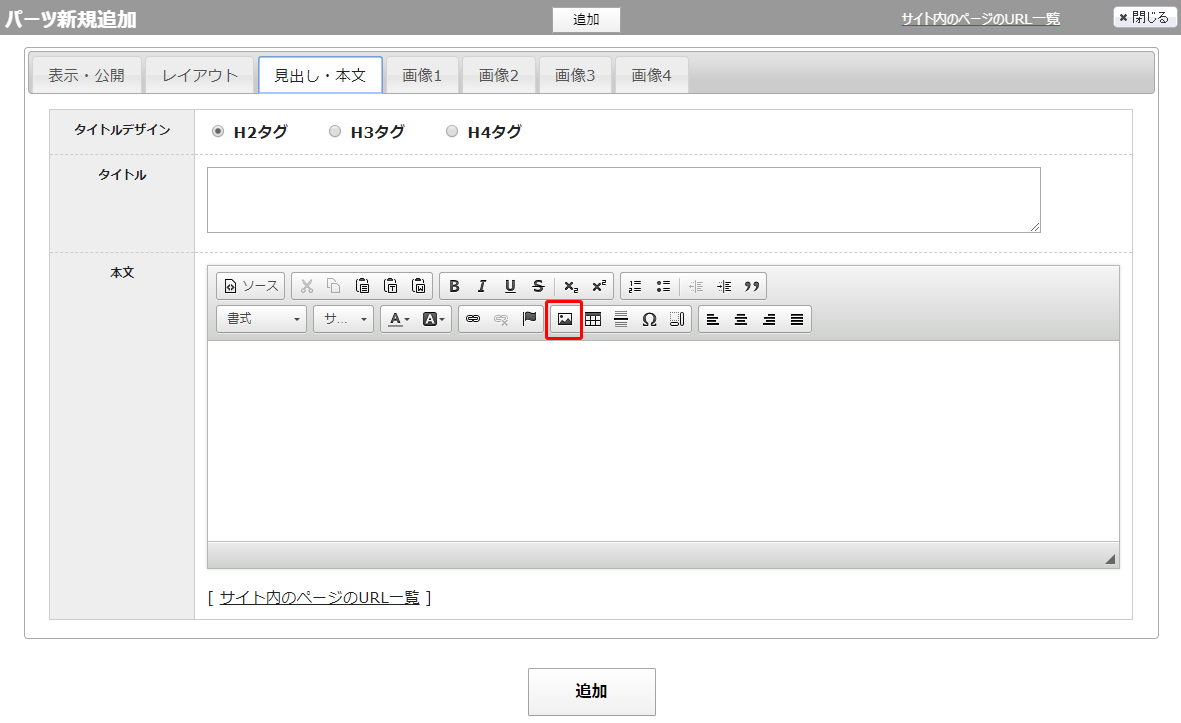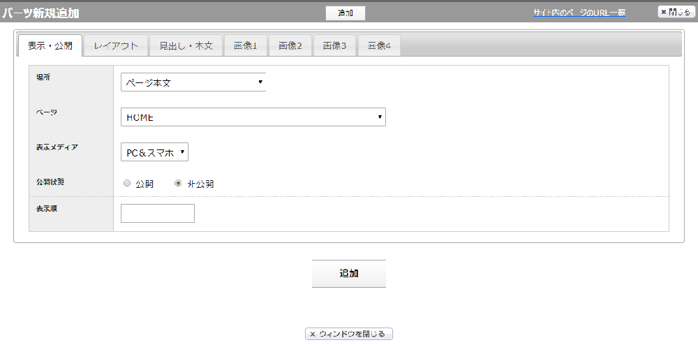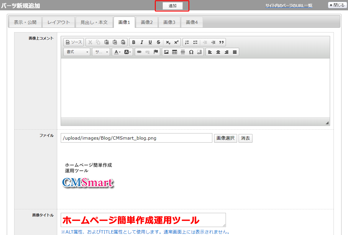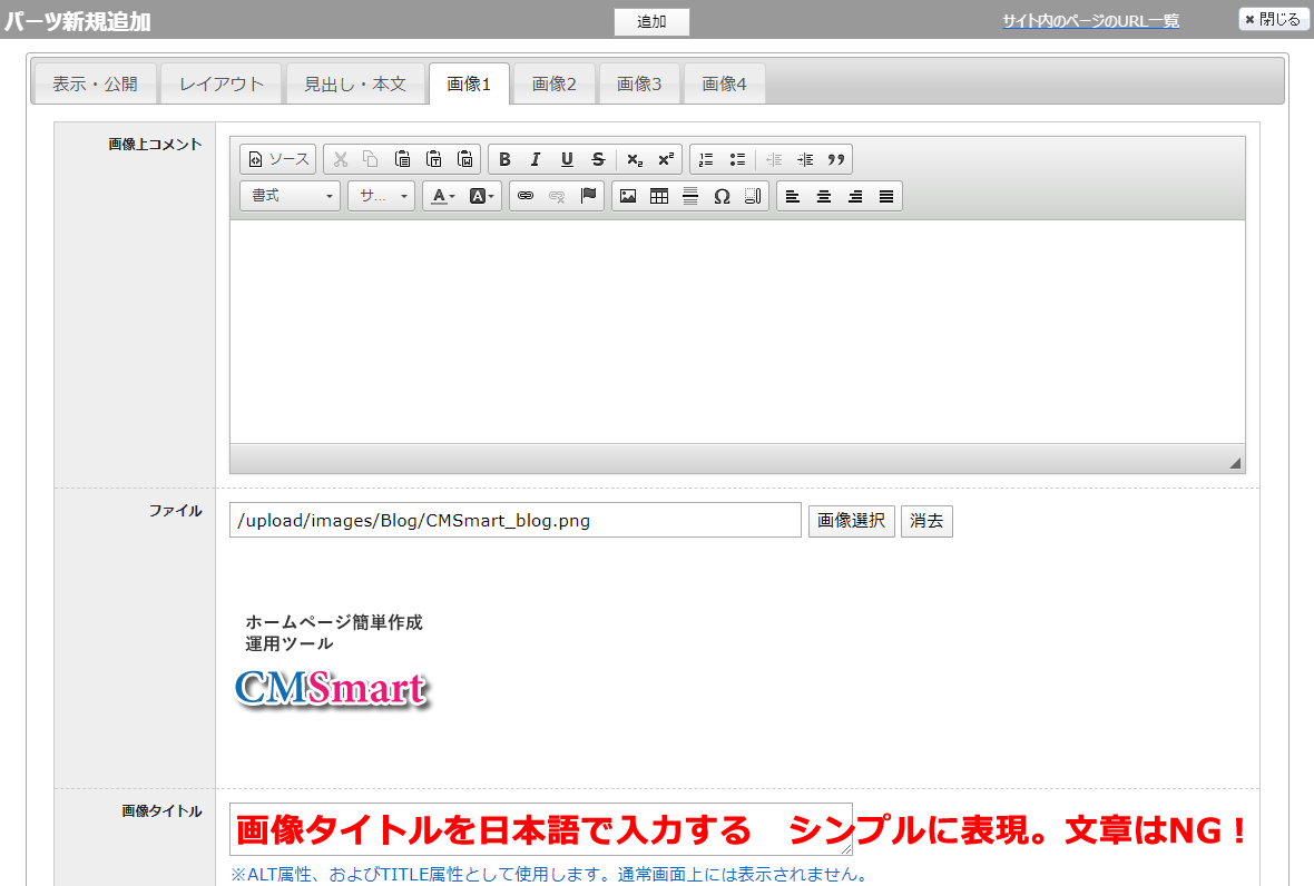 - パーツの画像1〜4を選択して、画像をアップする場合