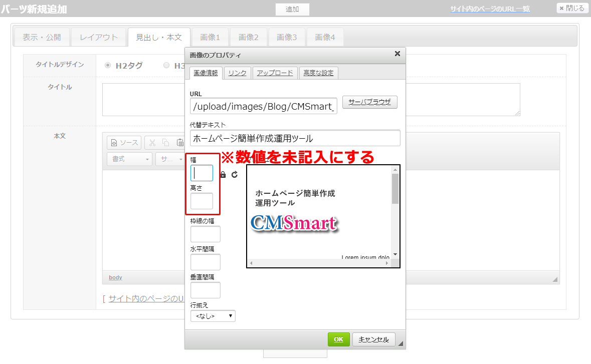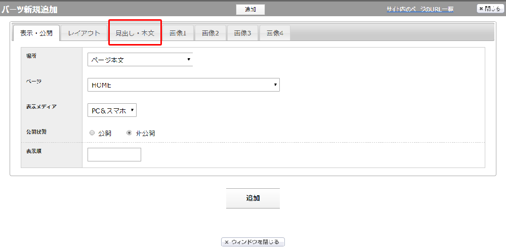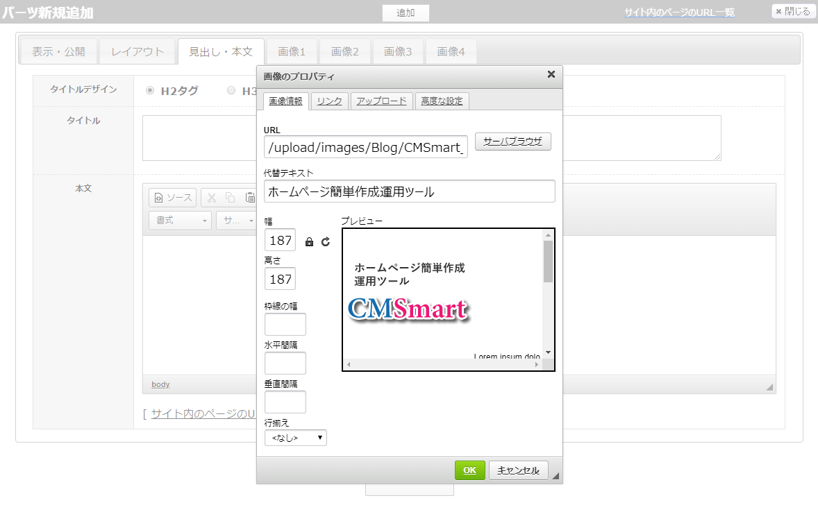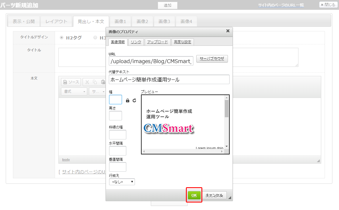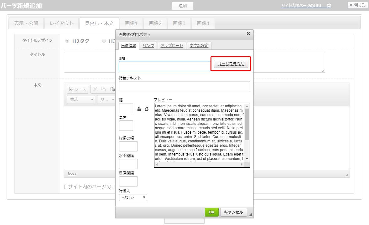 - パーツの画像1〜4を選択して、画像をアップする場合