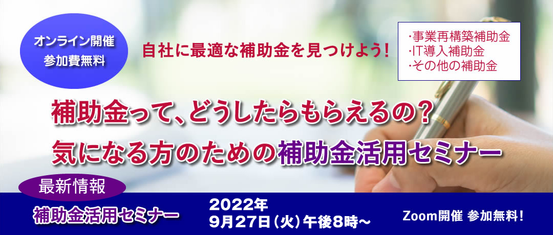 補助金のことが気になる方は、ぜひとも、今回の勉強会にお申し込み下さい。