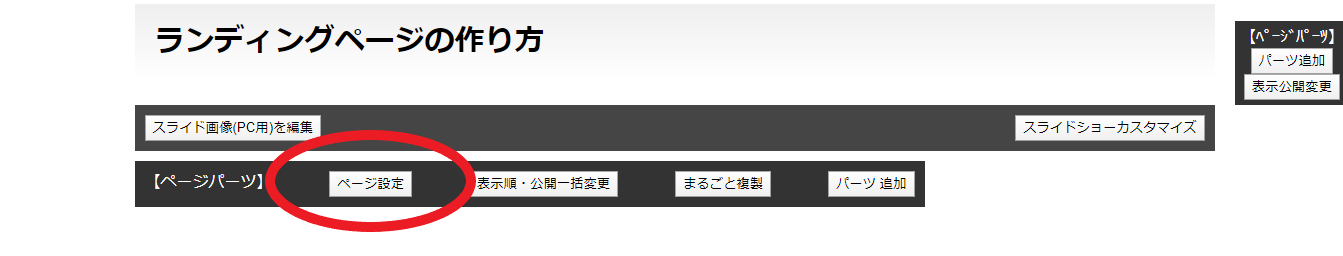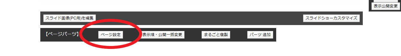 ページ名の下に出ている「ページ設定」から細かく設定していきます。