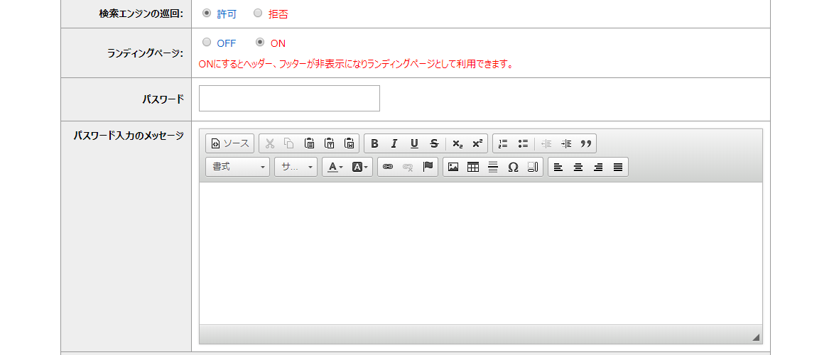 ⑩ 「ランディングページ」 ・・・ 「ON」にしてください。