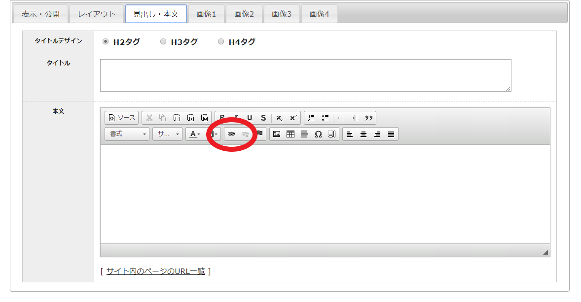 リンクを貼りたい箇所にカーソルを合わせてから、リンクボタンをクリックしてください