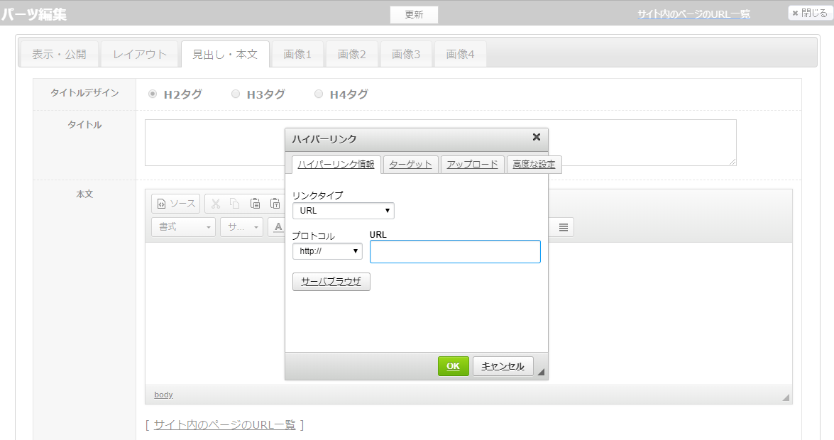 ⑤リンク先 ・・・URLを貼り、同じウィンドウで開くか、画像ポップアップで表示するのか選択できます。