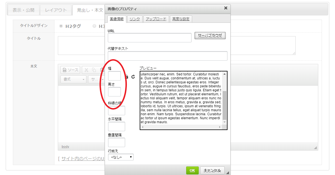 幅・高さにサイズ数は入力しないようにしてください