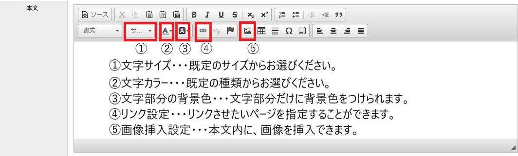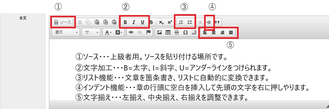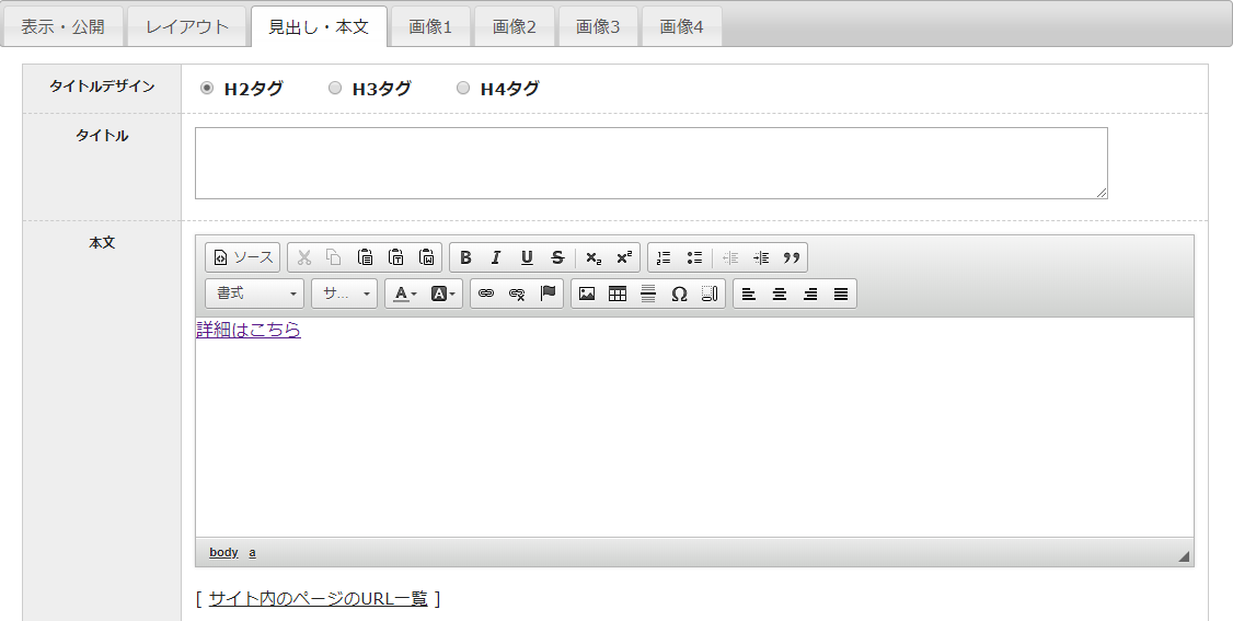 次に、この画面の見出し・本文について各項目を説明します。