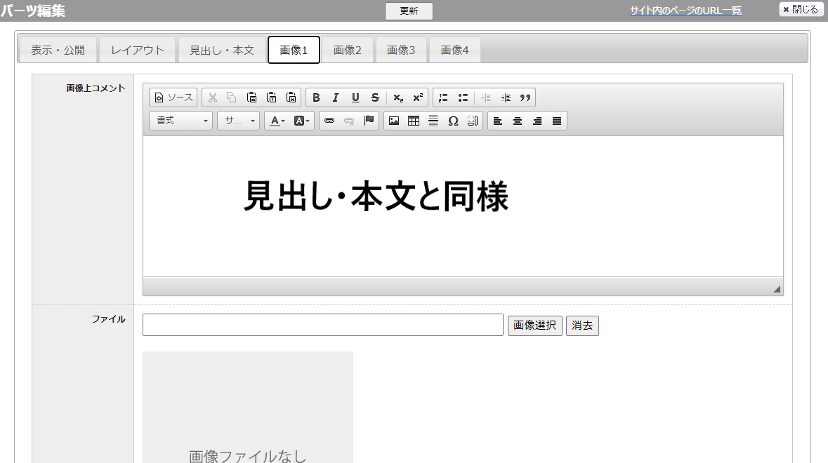 ➃コメント ・・・画像下に表示されます。見出し・本文と同様の機能です。