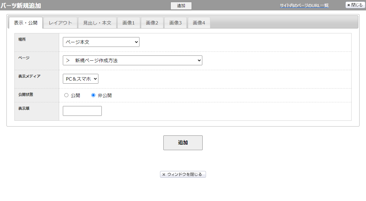 この画面の表示・公開について各項目を説明します。